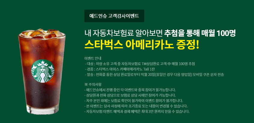• 자동차보험 신규 가입 시 신세계상품권 2만원 증정 (30만원 이상 결제 시)